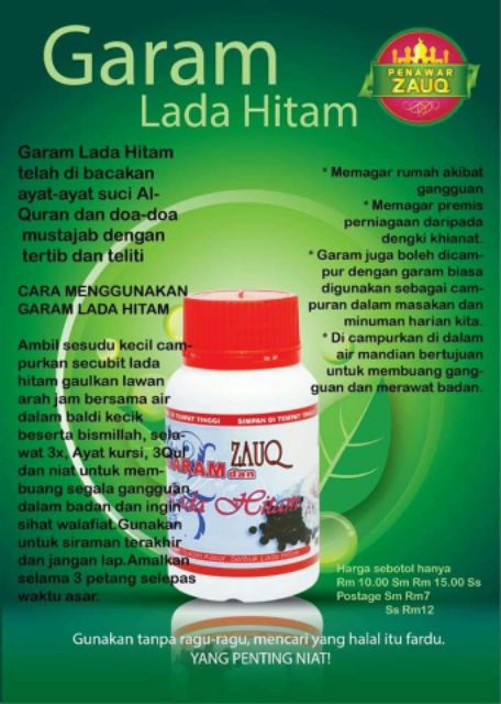 Anda boleh berikhtiar dengan memasukkan garam bukit & lada hitam ke dalam bekas dan .